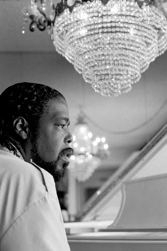 An intimate and rare print of Barry White photographed in his home in Sherman Heights, Los Angeles in 1986 by photographer AJ Barratt.